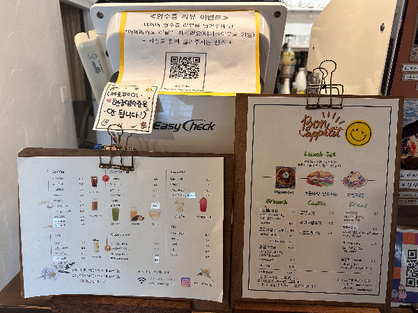 전체적으로 자극적인 메뉴보다는 누구나 편하게 먹을 수 있는 조합 위주라 부담 없이 즐기기 좋은 브런치 카페라는 느낌이었어요.