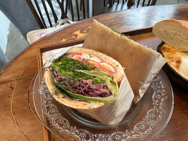 일반 식빵 샌드위치보다 조금 더 브런치다운 느낌을 원한다면 이 메뉴가 가장 잘 어울려요.