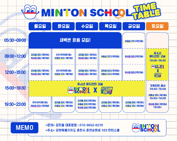 그러던 중 지난번 춘천 베네탑을 방문했을 때 사장님의 소개로 알게 된 곳이 바로 민턴스쿨이었습니다.