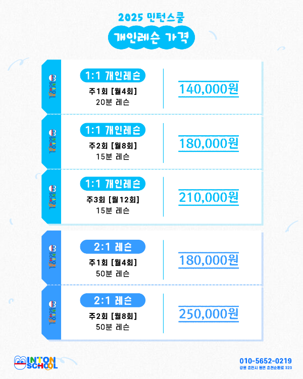 그래서 이번에 춘천 민턴스쿨 1:1 오전 레슨을 체험이 아닌 주 1회 월 4회권으로 등록했고,