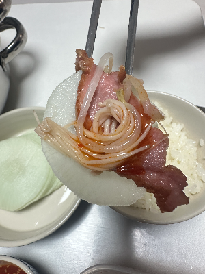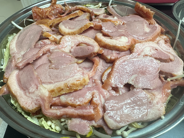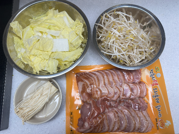 - 냄비 바닥에 양파 → 알배추 → 숙주 순으로 넉넉히 깔아줍니다.