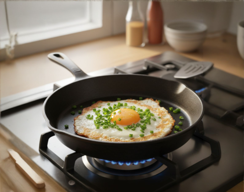 계란을 톡 깨서 넣고, 노른자를 터뜨릴지 말지는 취향대로! - 불 조절 & 굽기