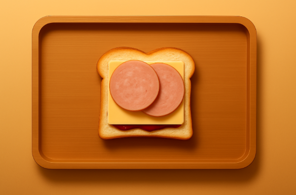 잼 위에 샌드위치 햄을 올리고, 그 위에 치즈 한 장을 얹어주세요.