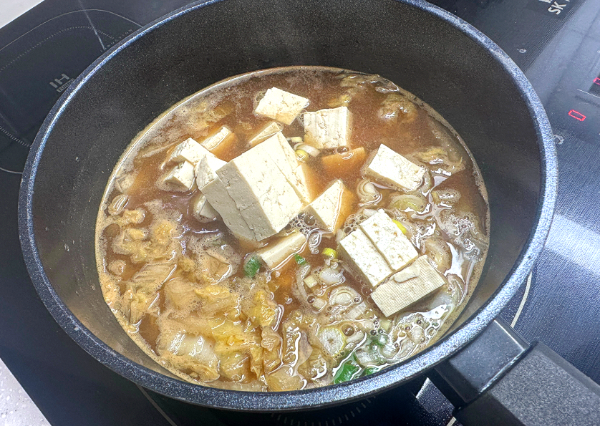 6. 대파·두부 넣고 더 끓이기 - 완성의 향과 식감을 더하기