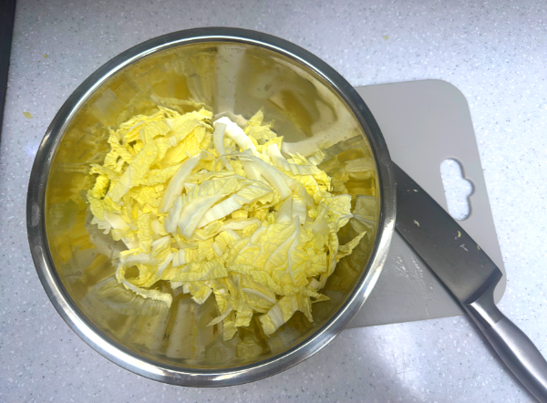 - 배추는 심은 얇게, 잎은 큼직하게 썰기