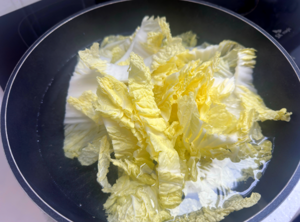 - 배추는 잎과 심을 함께 한 입 크기로 썬 뒤 끓는 물에 넣고 20~30초만 짧게 데치기.