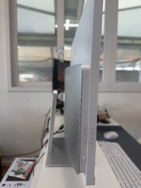 27인치 화면에 본체가 일체형으로 붙어 있어 책상이 넓어 보이고, 어디에 두어도 이질감 없는 심플한 화이트 + 실버 조합이 만족스러웠어요.