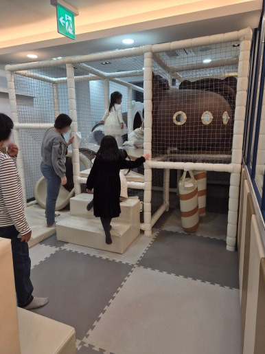 미끄럼틀, 트램폴린 느낌의 부드러운 구조물, 작은 놀이 공간까지 있어서